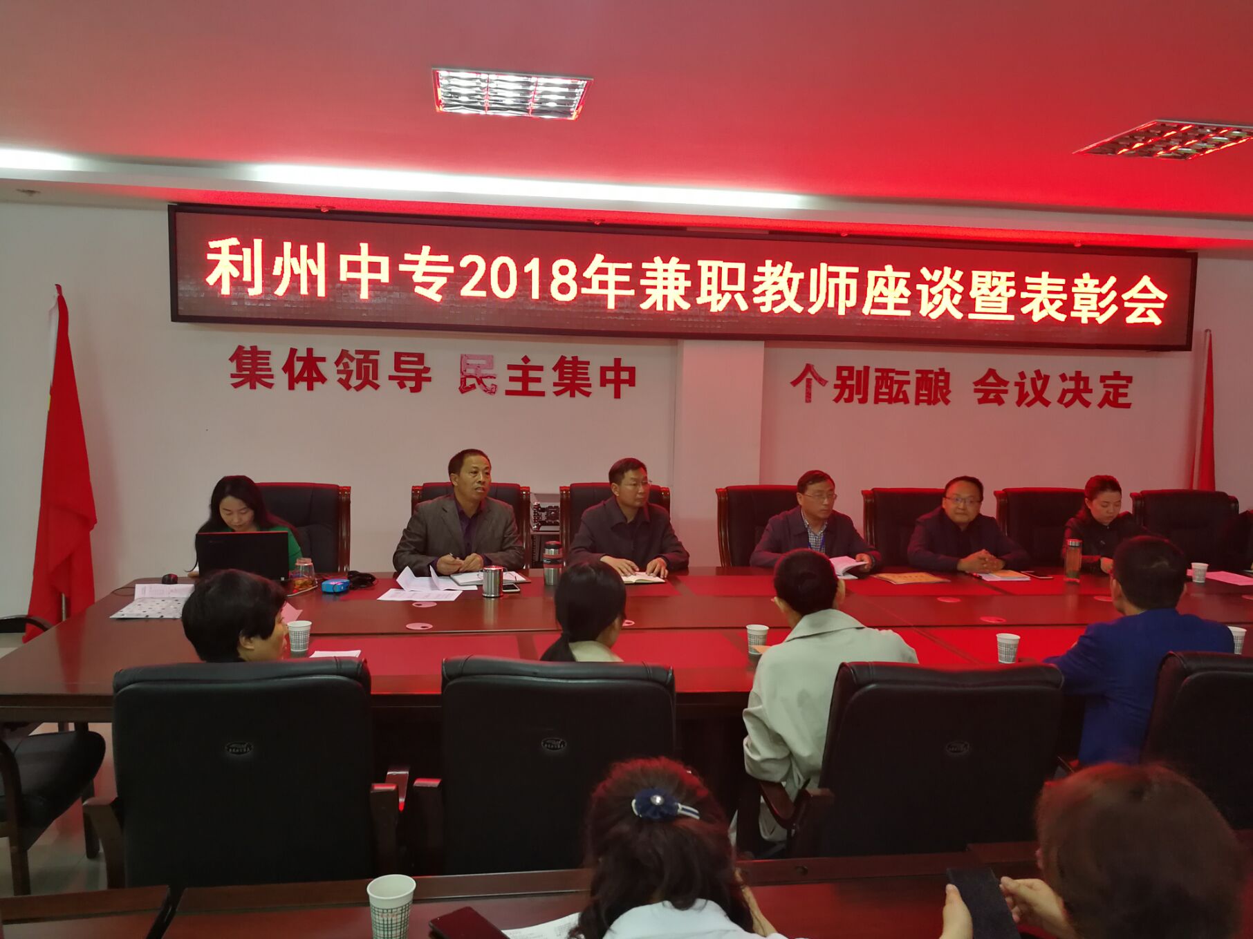 为深入贯彻利州中专人才培养方案,提升兼职教师队伍素质,助推我校医卫类专业建设稳步发展。4月11日,学校组织召开了利州中专2018年兼职教师座谈暨表彰大会。市区各大医院领导、学校党委书记杜建新、副校长赵刚以及学校相关科室负责人和全体专业兼职教师参加了会议。会议由实训科科长冯大军主持。