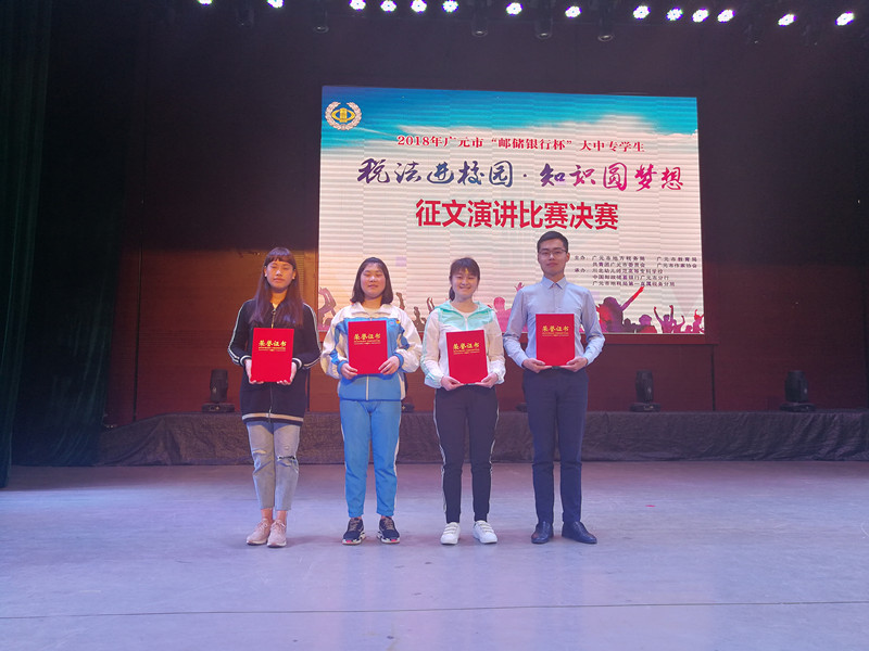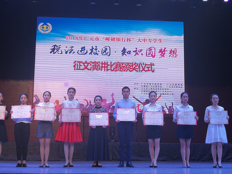 由广元市地税局、广元市教育局、共青团广元市委、广元市作家协会联合举办的2018年“邮储银行杯”大中专学生“税法进校园·知识圆梦想”征文演讲比赛在3月拉开帷幕。自启动以来,我校学生踊跃参加,共收到征文作品45篇,24人参加演讲比赛。经过校内的评选,共有10篇征文作品、4人演讲作品进入最后的决赛。决赛中,我校17高护班马佳雨、17农医3班魏珊珊两位同学荣获征文比赛优秀奖;17农医3班罗伟同学、15高护班王瑞高同学分别荣获演讲比赛三等奖、优秀奖。