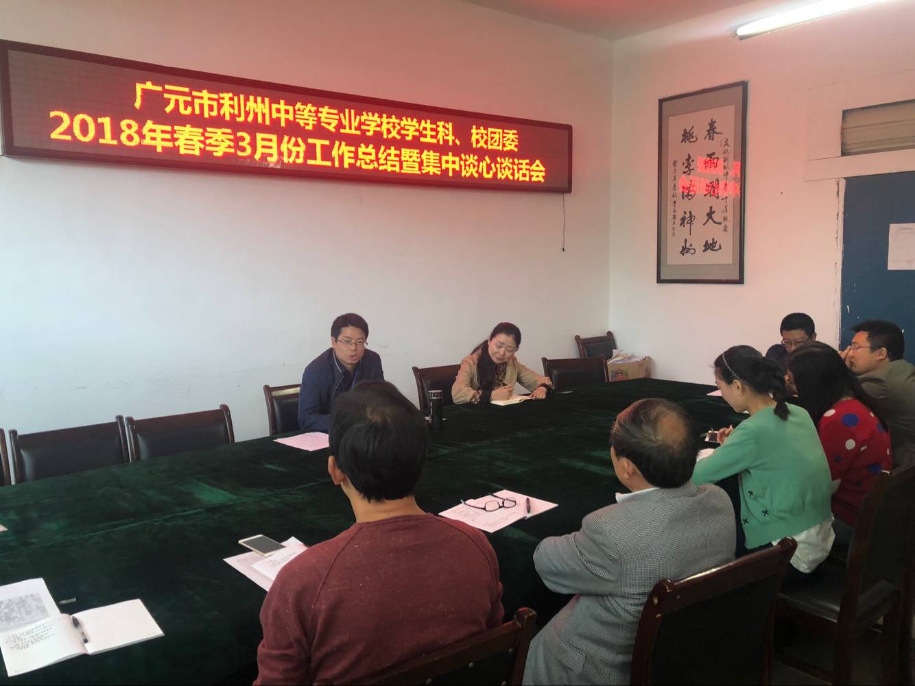 2018年4月17日上午,学生科、团委组织召开3月份工作总结暨集中谈心谈话会,科室全体同志参加了会议。