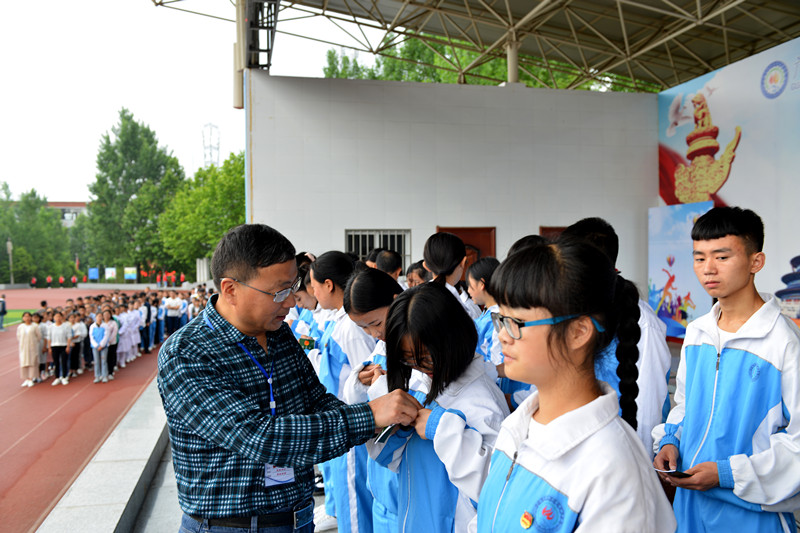 大会在庄严的国歌声中来开了序幕,学校领导和团员代表为2018年春季团校顺利结业的20名新团员佩戴团徽、颁发团员证,新团员与全体团员一起,在鲜红的团旗前庄严宣誓,重温入团誓词。