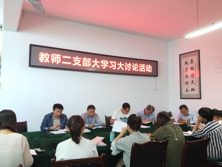 2018年5月15日下午,教师二支部全体党员同志开展大学习大讨论活动,会议在邓松书记的主持下,学习深入,讨论热烈。与会同志一致认为,深化“大学习、大讨论”活动,是当前我校紧迫的政治任务,全面领会党的十九大精神和习近平新时代中国特色社会主义思想“四川篇”“教育篇”,坚持政治导向、问题导向、目标导向,丰富新时代广元教育实践,对于加强校风师德师风建设,加快学校内涵发展具有十分重大的战略意义。
