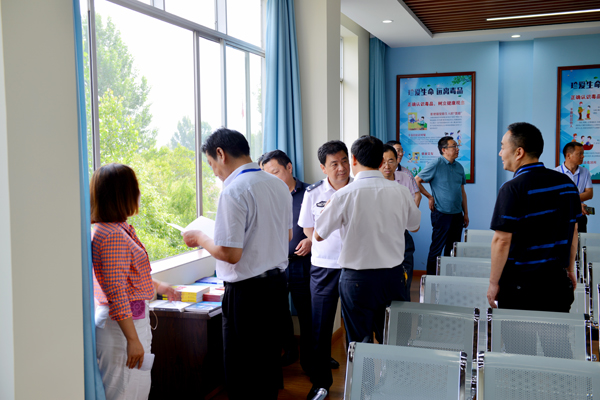 调研组一行观看了我校近年来以“无毒青春 · 健康人生”为主题的毒品预防教育工作专题展板,实地查看了我校为学生青春期护航开设的禁毒预防教育工作室 — 青春防护站、心理健康活动室 — 青亲心灵驿站、青亲沙龙,翻阅了学校禁毒预防教育网站、禁毒教育教案、课件、视频、校本教材、宣传画册、学生心得体会等相关资料。