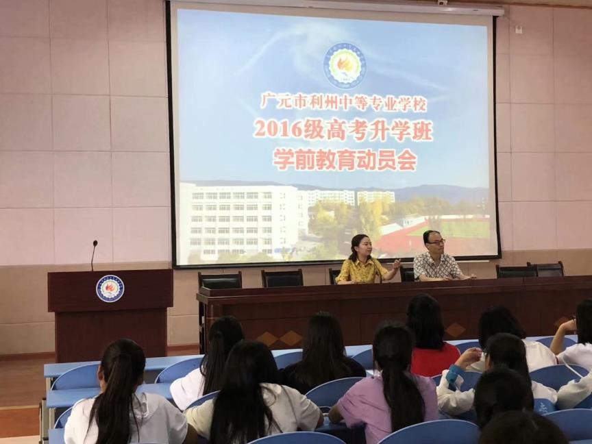 2018年6月13日,通过选拔考试的16级同学们齐聚一堂,召开本次升学班学前教育的动员会,会上,教务科郑敏科长向同学们提出勉励和要求,她激励同学们努力学习,圆梦大学,并对高考班的相关要求向同学们进行说明。