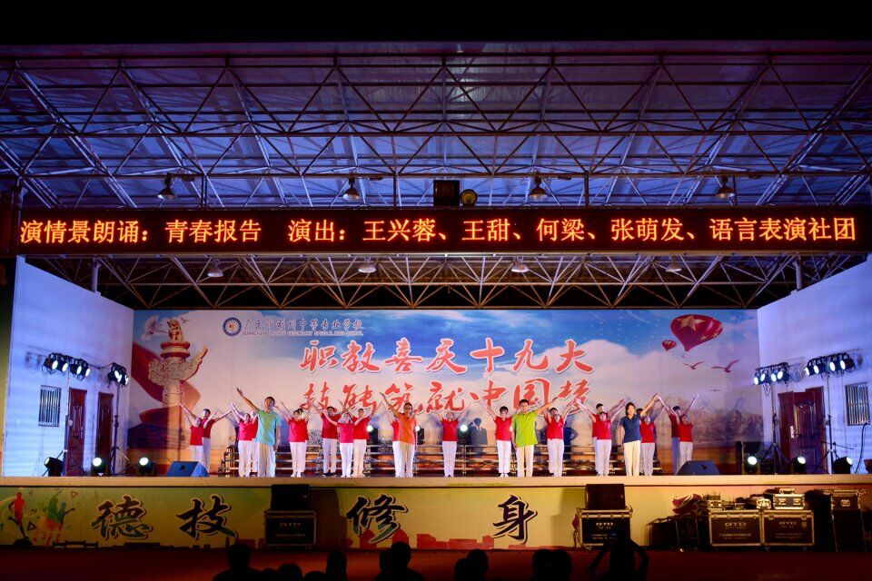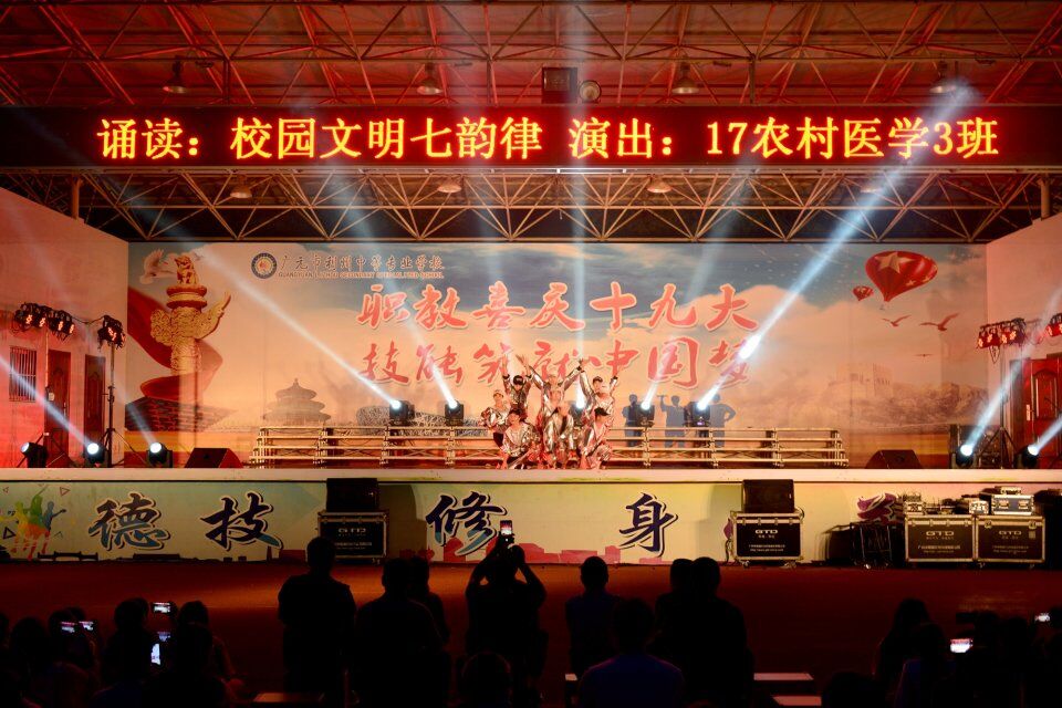 ??? 在全场观众兴奋的倒计时后,学校拉丁舞社团演绎的《创造奇迹》拉开了晚会的序幕。17级农村医学定向班自编自创《校园文明七韵律》诵读和情景剧表演,生动还原了同学们的日常学习和生活场景,充分展示了利专学子良好的精神风貌。彝族学生代表演唱的《忧伤的妈妈》,勾起了大家对亲人的思念;藏族学生卓丹让俄和他的伙伴们演绎的歌舞《贡布酒歌》,凭借优美的舞姿,动听的歌声,赢得了阵阵掌声。多民族学生的精彩演绎,彰显了学校的和谐氛围。学校礼仪队带来的《礼仪创编操》、情景剧《天使就在身边》,凝结了学校技能培养的累累硕果。经典诵读《山居秋暝》、《书简舞》展示了利专学子诵读中华经典,争做经典的传承者。学校青年教师参与的《青春报告》、《风筝误》彰显了新时代青年教师别样的风彩,赢得了学生的喝彩。晚会在《国家》的歌声中圆满落下帷幕。
