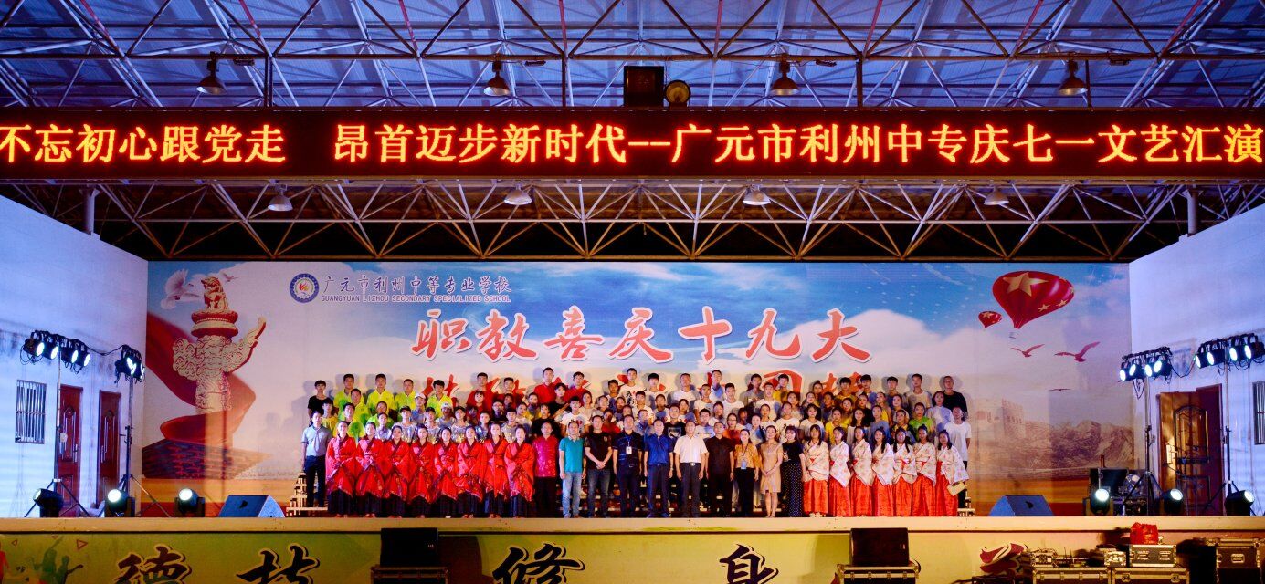 ??? 为庆祝建党97周年,6月21日,我校在田径场举办了“不忘初心跟党走、昂首迈步新时代”庆七一文艺汇演,学校中层及以上干部、部分教师及2000余名学生观看了演出。