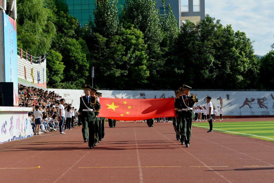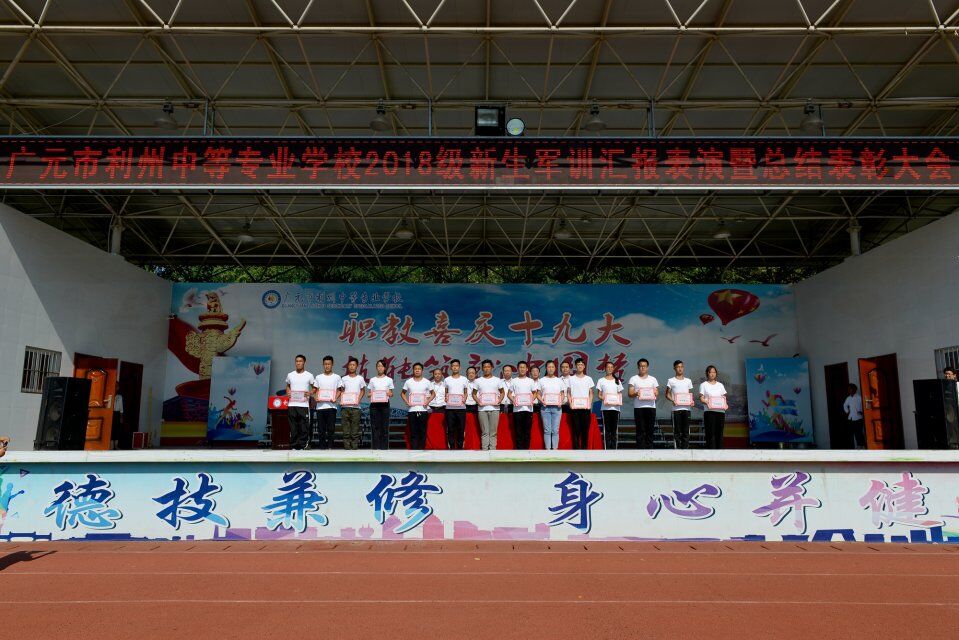 为缅怀抗战英烈,弘扬革命精神,强健学生体魄,磨炼学生意志,激发爱国热情,2018年9月3日上午,利州中专在运动场隆重举行2018级新生军训汇报表演暨总结表彰大会,近千名2018级新生整齐着装,以昂扬的斗志、高涨的士气、矫健的步伐充分展示了12天训练的丰硕成果,向纪念中国人民抗日战争暨世界反法西斯战争胜利73周年献礼。学校李锦校长、党委杜建新书记、赵刚副校长、贾相成副校长、苏克难副校长、全体中层干部及全校师生参加了此次大会。
