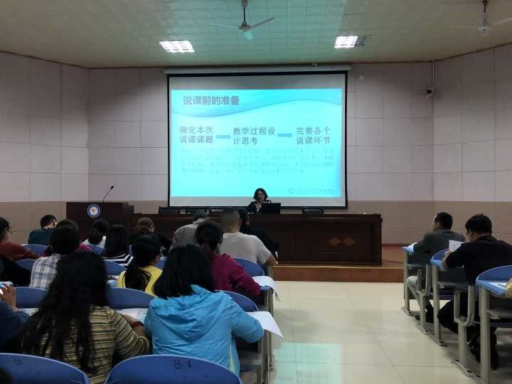 王文老师结合自己担任四川省中医药职业教育集团第二届信息化教学设计比赛评委的亲身体验和自己长期指导教师参赛的经验,从说课前的准备、课程分析、教学内容分析、教学目标确定、教学重点和难点、教学方法设计、教学过程的设计与实施、教学评价、教学反思、教师表述与仪态等方面对信息化教学设计说课比赛进行了一一解析,讲解了每项内容是什么?做什么?如何做?为什么这样做?同时结合她所收集的比赛获奖优秀例证进行了讲解。讲解生动形象,既有内容又有实例,老师们感觉清楚明了,收获很大。
