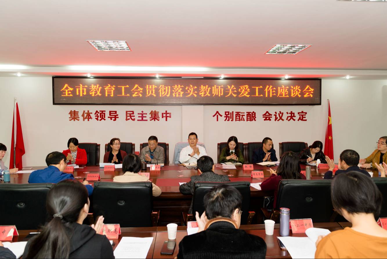 2018年10月12日上午,全市教育工会贯彻落实教师关爱工作座谈会在利州中专召开,市教育工会、各县区教育工会、市直属学校工会代表参加会议,会议由市教育工会主席杨元主持。