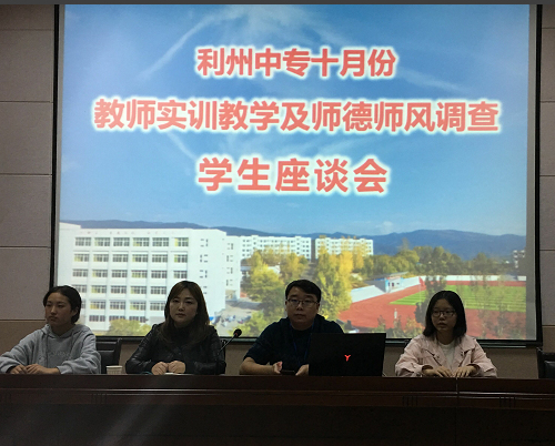 为了进一步加强教师队伍建设,广泛收集学校实训教学质量,提升教育教学效果,更好的了解学生学习现状,扎实推进师德师风建设活动的深入开展。10月31日,实训科联合教务科组织召开了“利州中专十月份教师实训教学及师德师分调查学生座谈会”,2017级、2018级班委干部代表参加了座谈会。教务科副科长赵星圻参加了会议。会议由实训科马灿副科长主持。