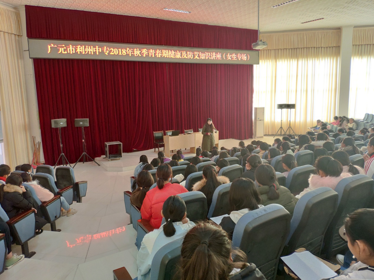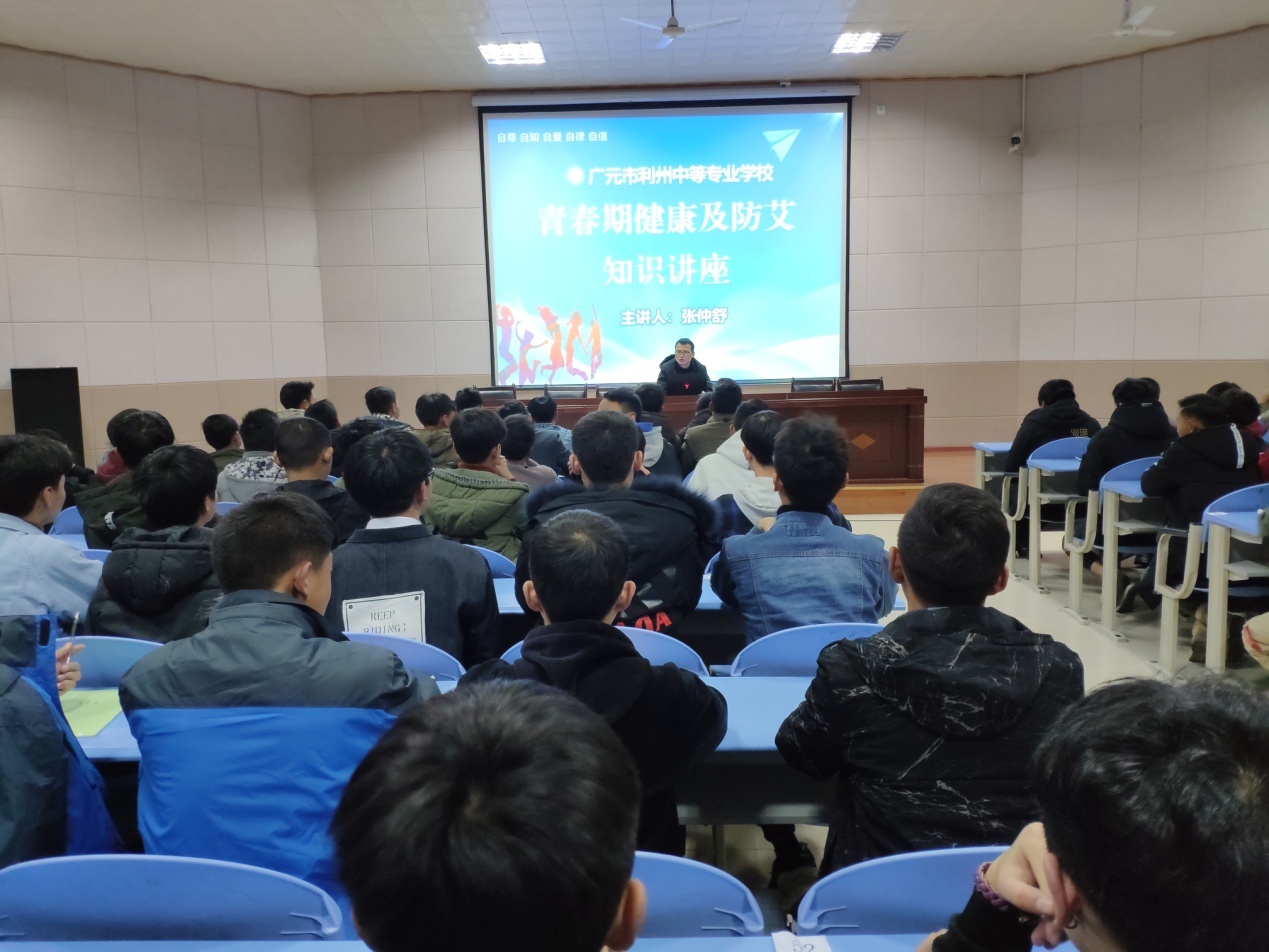为进一步提高学生对青春期生理、心理健康知识的认识,增强学生预防艾滋病的意识,引导学生树立正确的健康观念,增强自我保护意识,学会积极健康地生活和学习。2018年12月5日-6日,利州中专分男女举办了5场青春期健康教育及艾滋病防治知识讲座,2018级1000余名学生参加了学习。