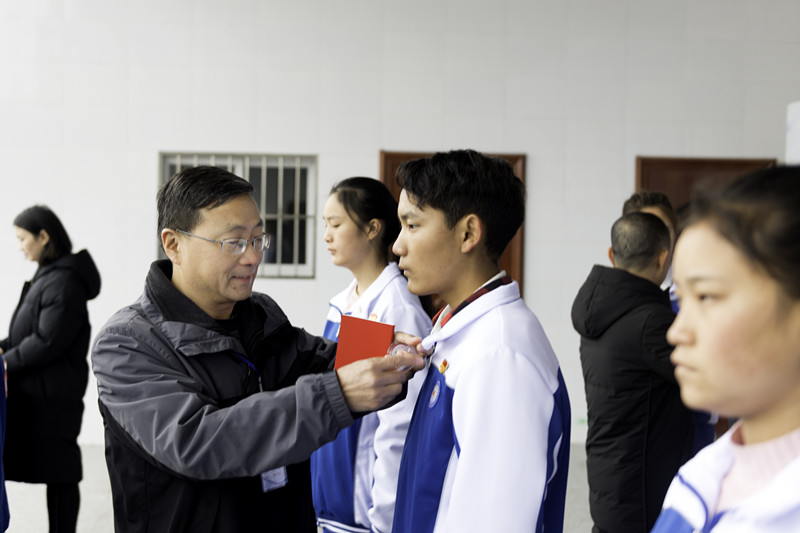 随后,学校领导为学生代表佩戴成人纪念章,并赠送《中华人民共和国宪法》手册。同学们接过宪法也意味着接过一份责任与使命,从此要做一名尊法、懂法、守法的合格公民。学生代表的发言表达了对家长、老师精心教诲和学校悉心培育的感恩,表达了对未来无限的憧憬,并表示一定会担当家庭和社会之责任,以优异的成绩回报学校、回报社会。全体学生面向鲜艳的五星红旗庄严宣誓:我是中华人民共和国公民。我将遵守宪法和法律, 拥护中国共产党的领导, 正确行使权利, 忠实履行义务, 弘扬社会道德, 爱国、励志、求真、力行, 做有理想、有本领、有担当的好青年, 努力成为中国特色社会主义合格建设者和可靠接班人。