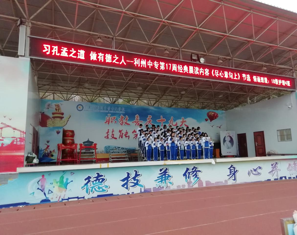 立志先立人、有德才能行,为更好塑造我校学生高尚心灵,培养有德之人,12月19日上午,利州中专组织2018级学生齐聚操场,在18级护理4班的领读下齐声诵读《尽心章句上》。