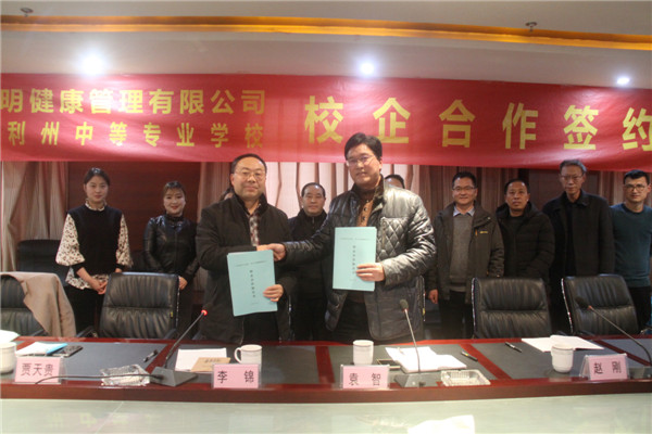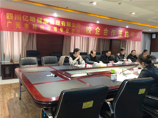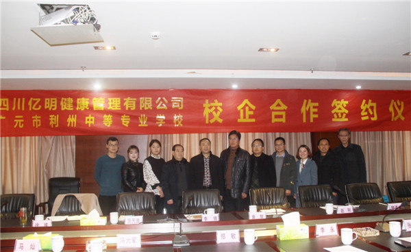 2018年12月21日,广元市利州中等专业学校、四川亿明健康管理有限公司生态康养产教融合校企合作签约仪式在四川亿明健康管理有限公司会议室如期举行。学校校长李锦、副校长赵刚、四川亿明集团有限公司副总经理袁智、四川亿明健康管理有限公司万缘医院院长贾天贵等校企双方领导出席了本次签约仪式。