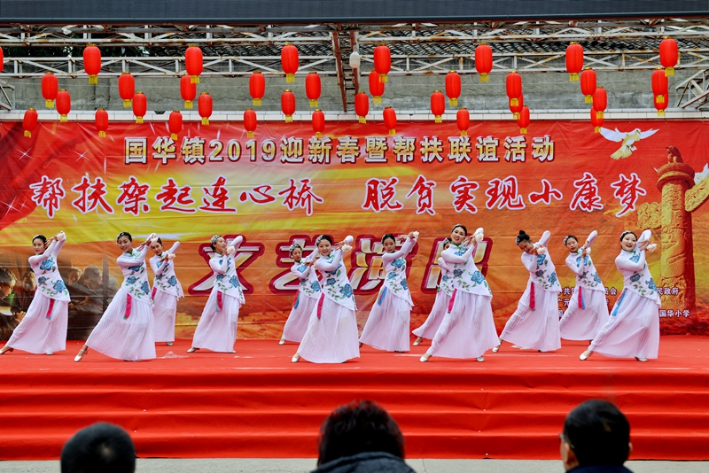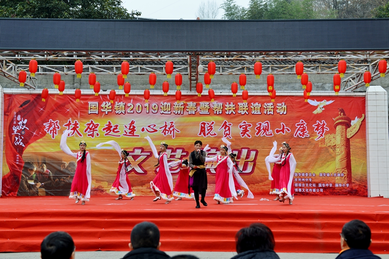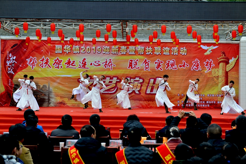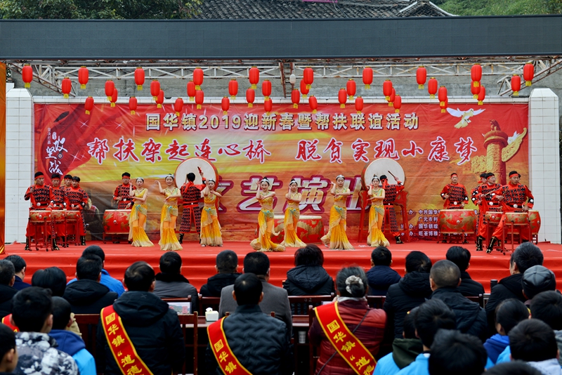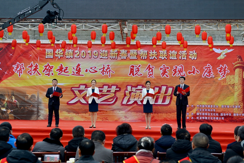为助力脱贫攻坚,决战决胜全面小康, 1月9日,在2019年新春来临之际,国华镇党委政府、利州中专共同组织开展了以“帮扶架起连心桥,脱贫实现小康梦”为主题的2019迎新春文艺汇演暨帮扶联谊活动。旺苍县委政府、市教育局部分领导,利州中专全体帮扶干部,国华镇党委政府、贫困户以及当地群众和师生参加了活动。