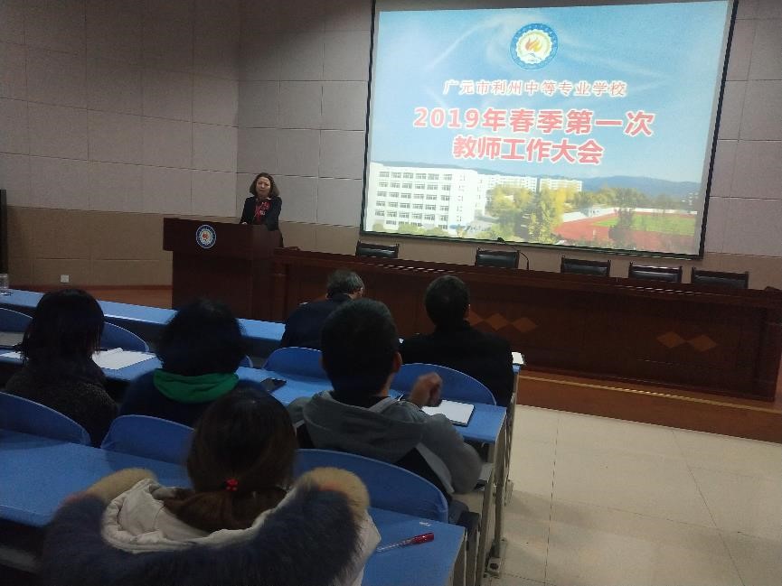 春风和暖,3月6日,利州中专全体教师齐聚一堂,召开春季第一次全体教师大会,会议由教务科郑敏科长主持。