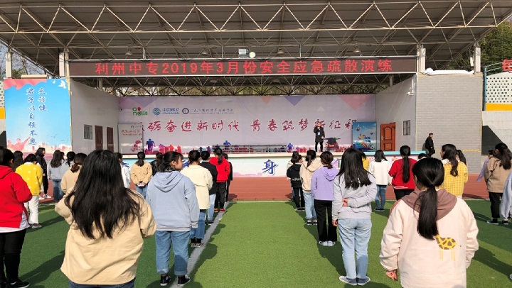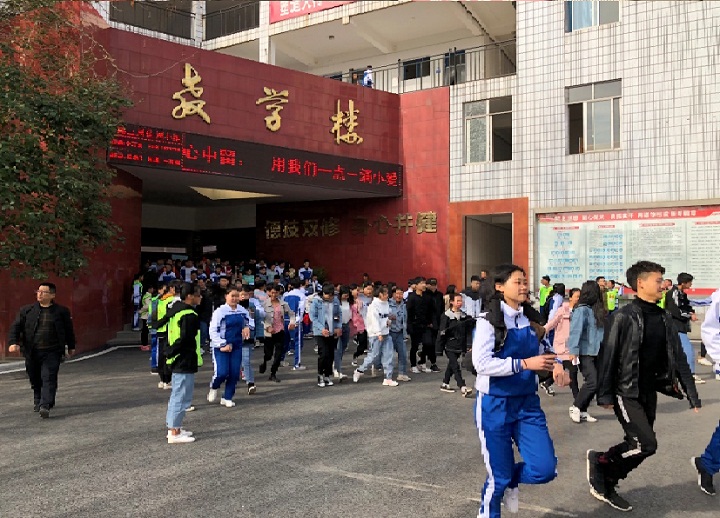 随着校园响起警报铃声,各工作人员迅速到达指定岗位。接着,学校应急疏散演练负责人下达了“学校发生紧急情况,请全体师生立即安全撤离”的命令。于是各班学生在班主任老师的组织下,沿着学校指定路线迅速安全有序地撤离到运动场,各班及时进行了人数清点。