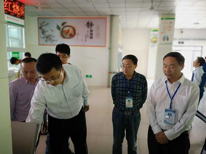 根据国家教育部、国家市场监督管理总局、国家卫生健康委员会三部委联合发文第45号文件精神,为确保学生和教职工在校集中用餐的食品安全与营养健康,4月22日上午,市教育局副局长谢正成同志到我校食堂实地调研。他深入后厨查看了具体的加工环节;查看了定点采购的落实情况;查看了明厨亮灶的使用情况;查看了留样、消毒环节等各方面。谢局长在调研中讲到,学校和食堂承包方要严格按照《食品安全法》、《学校食品安全与营养健康管理规定》加强管理,坚持以“四个最严”为统领,全面落实学校的主体责任,以“零容忍”的态度和有力举措确保师生舌尖上的安全。陪同调研的学校领导有李校长、杜书记、苏校长、贾校长。