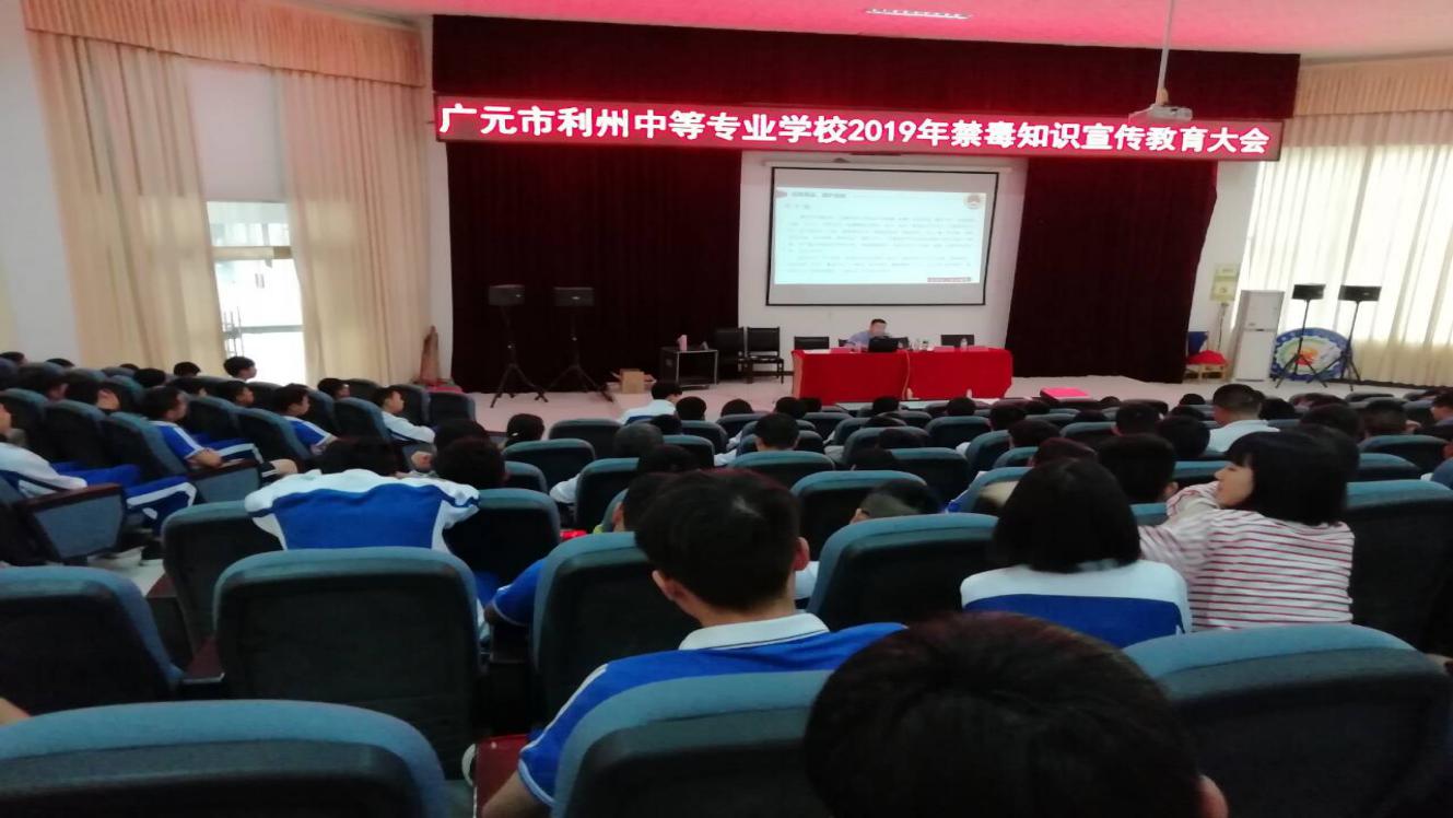 在全市创建“全国禁毒示范城市”百日攻坚的关键时刻,为进一步增强我校学生的识毒、拒毒、防毒、禁毒意识,筑牢学生禁毒防线,促进学生健康成长,2019年4月24日下午,我校联合利州区检察院在学校阶梯教室对200多名学生代表进行了禁毒宣传教育。
