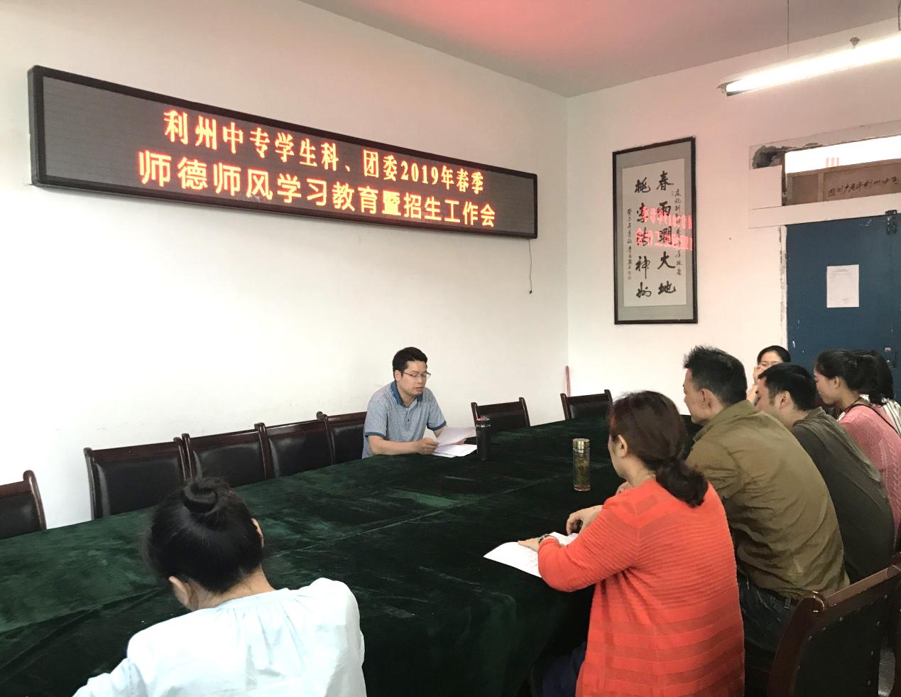 2019年4月26日上午9点,根据学校安排,学生科、校团委在东3-4会议室召开师德师风学习教育和招生工作会。科室全体成员参加了会议,学生科王兴兵科长主持了会议。