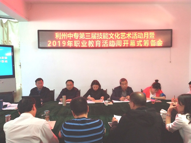 我校召开2019年职业教育活动周暨学校第三届技能文化艺术节活动筹备会,学校副校长赵刚主持会议并讲话,学校教学部负责人和活动项目负责老师出席会议。