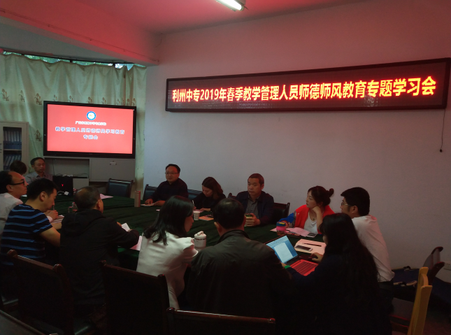 根据《四川省教育厅办公室关于开展师德师风大学习大讨论活动的通知》相关要求,为进一步加强师德师风建设,树立新时代教师形象,4月29日,学校开展了教学管理人员师德师风教育专题学习会,再次组织教学管理人员学习《新时代中小学教师职业行为十项准则》及《中小学教师违反职业道德行为处理办法(2018年修订)》,明确新时代教师职业规范,会议由赵刚副校长主持。