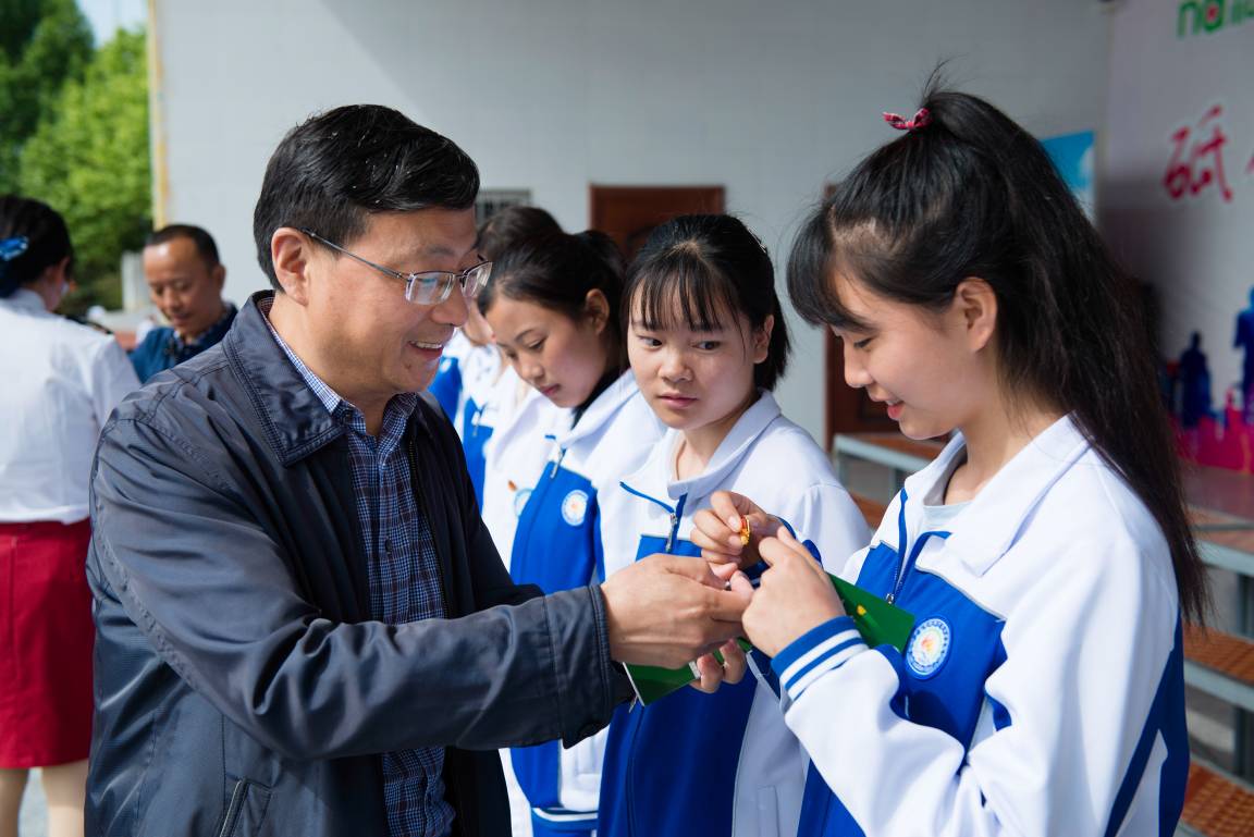 | 校领导为新团员佩戴团徽、发放团员证 |