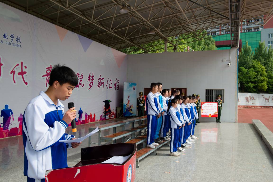 上午9点40分,大会在庄严的国歌声中拉开帷幕。入团仪式上,学校党委书记杜建新同志、副校长赵刚同志、副校长苏克难同志为2019年春季团课培训考试合格的12名新团员颁发团员证和团徽。在校团委郑爽老师带领下,全体新团员在团旗下庄严宣誓,与会人员共同重温入团誓词。学生会副主席李明明同学作为入团介绍人代表向新团员同学宣读《团章》中有关团员的义务和权利的条款,老团员代表阿布尔呷发言,回忆成长过程并鼓励新团员脚踏实地,虚心学习,积极进取,真正从思想上加入到团组织中去,以实际行动履行入团誓词。