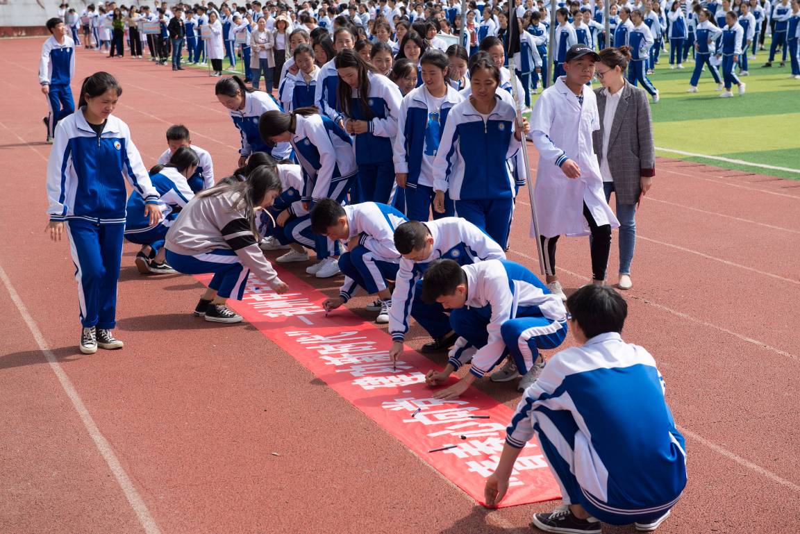 ???????????活动最后,受表彰的学生在田径场合影留恋,全体同学在班主任带领下所有团员郑重的在《青春心向党?建功新时代》横幅上签上了自己的名字。活动现场气氛热烈,秩序井然。同学们纷纷表示会积极参加“青春心向党?建功新时代”主题教育实践活动,用自己的实际行动为祖国的建设发展贡献青春力量。
