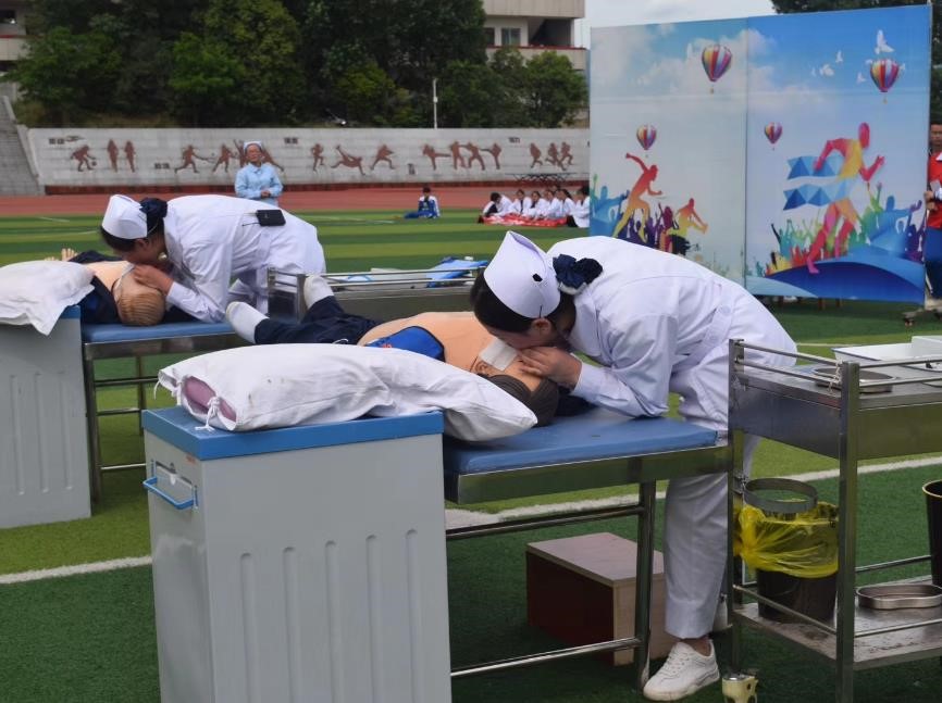 开幕式第三项为学校专业技能展演,高铁乘务和护理专业礼仪展示动作干练利落,步伐潇洒自如,举手投足,一颦一笑,尽显利专风采。护理专业心肺复苏和汽修专业发动机盲拆、盲装展示将开幕式气氛推向高潮,合抱之木,起于毫末,同学们的一招一式将精益求精的“大国工匠”精神展现得淋漓精致,同学们用经久不衰的掌声表达对技能和职业的尊重和渴求。