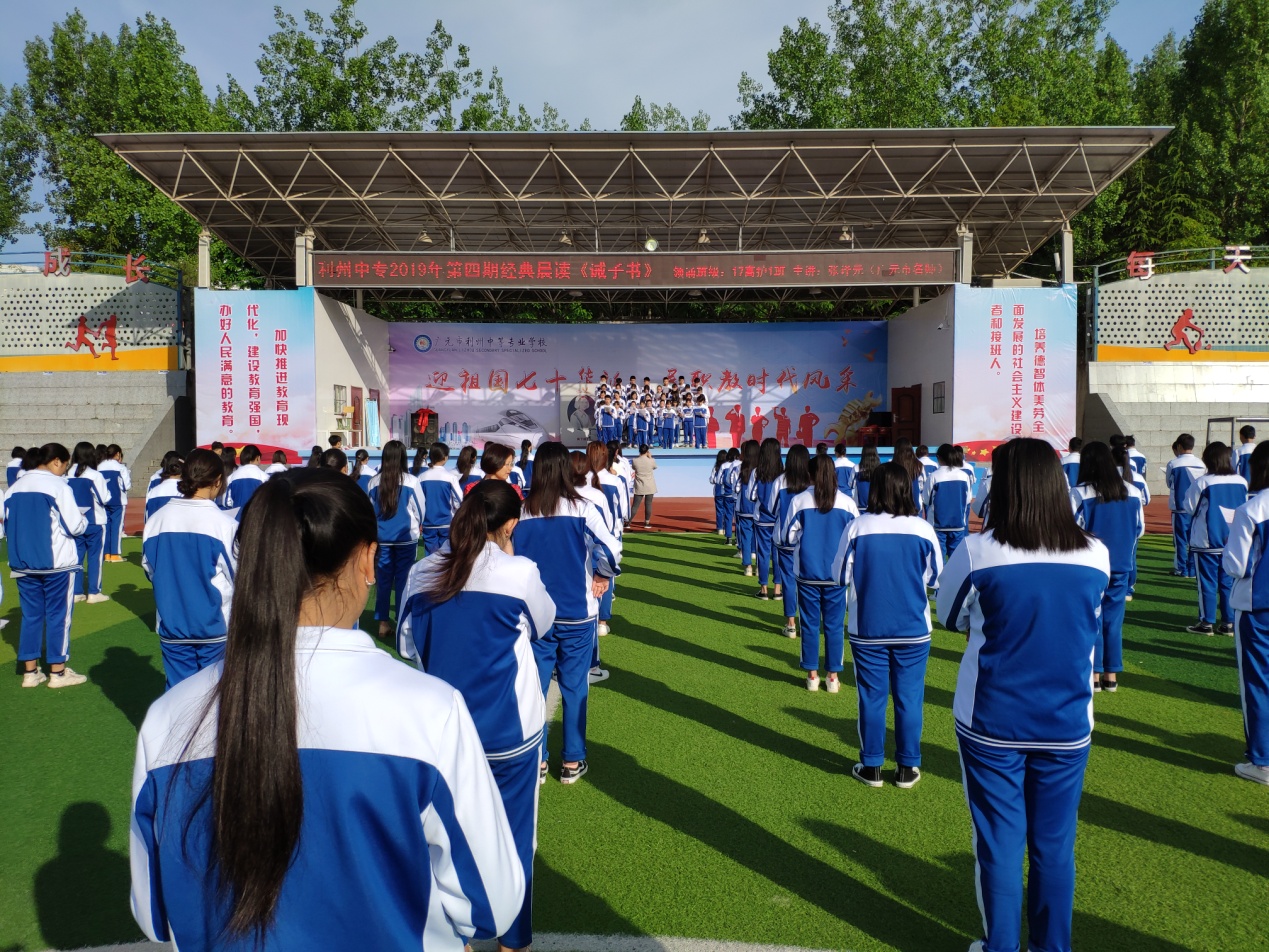 “深春偃旗归,悄然来浅夏”,立夏时节刚过, 2019年5月8日上午8点,利州中专近千名二年级学生就迎来了2019年第四期经典晨读活动。全体学生着蓝色校服站于绿色的草坪上,手里拿着手抄的《诫子书》和《诫外甥书》,初雨后金色的阳光洒在他们青春的脸上和身上,满屏都是朝气蓬勃的青春的模样。17级高护1班的同学领诵时抑扬顿挫,字正腔圆,情感充沛,读出了作为父亲的诸葛亮对儿孙的谆谆教诲,也读出了作为人丞的诸葛亮对国家的拳拳之心。