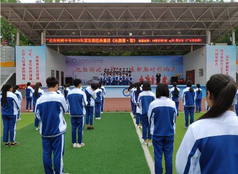 5月15日上午,当第一缕朝阳洒向大地的时候,利州中专操场上已经响起了朗朗的读书声,“千里冰封,万里雪飘……”2018、2019级近千名学生在田径场参加了学校组织的2019年第5期经典晨读《沁园春.雪》,广元市名师贾宗太老师从毛泽东同志的伟人事迹、诗歌的创作背景及现实意义等方面进行了认真解读。