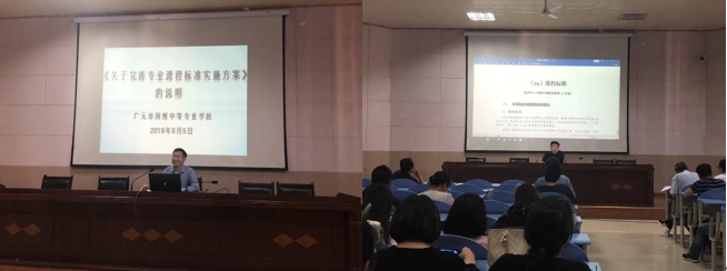 活动会上,诊改办李文华主任以“落实专业标准,助推新课标建设”主题,对新课程标准建设实施方案进行解读。新课标建设采用试点引领与整体推进原则:以省级示范专业建设为引领,总结编制经验,制定整体编制计划,全面推进新课标建设制度化、标准化和规范化。教务科副主任赵星对新课程标准模板进行说明,针对编制过程中的重点、难点和易混点内容进行深入剖析、细致解读。