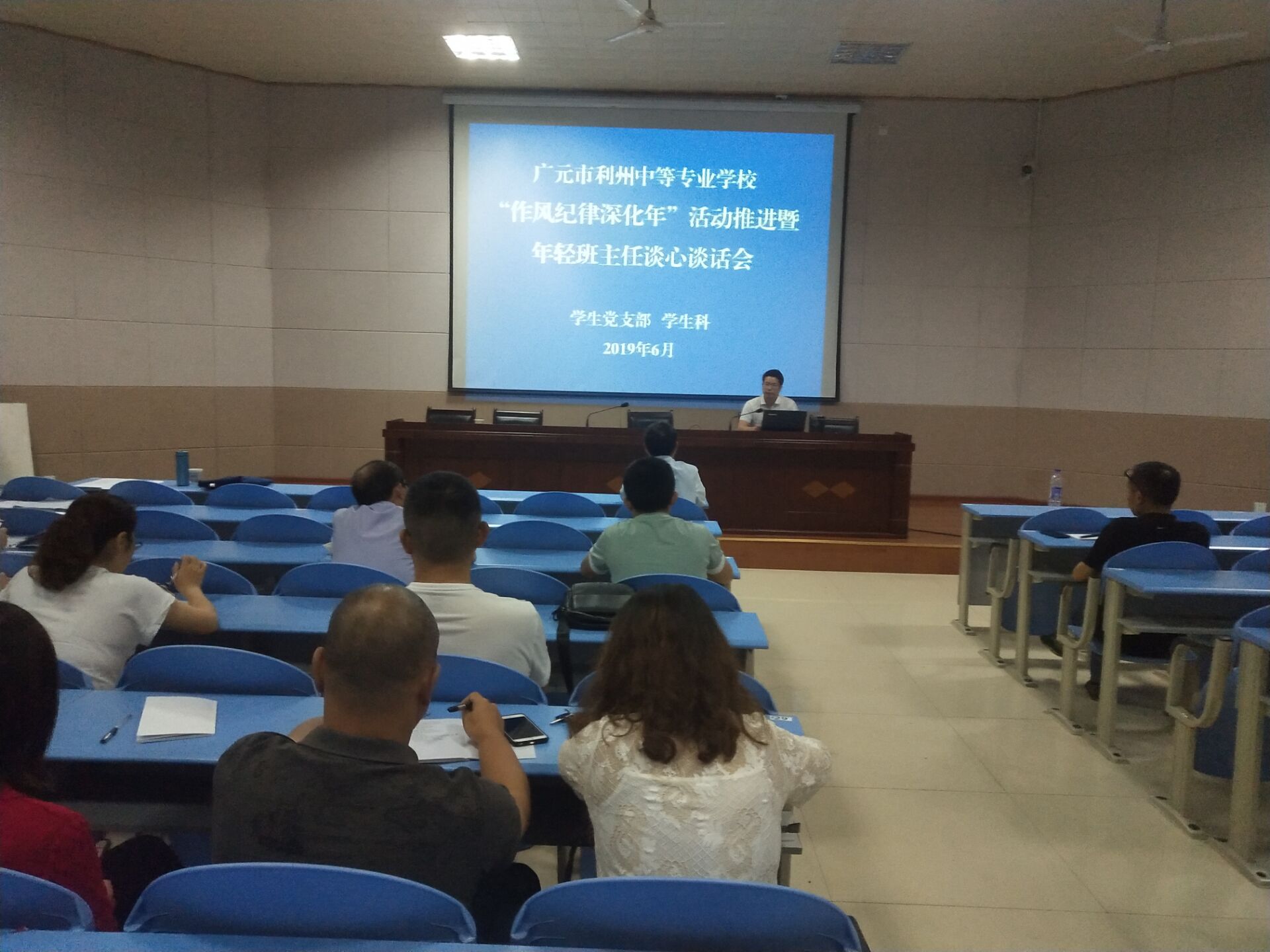 为进一步贯彻落实中共四川省纪委《关于集中整治形式主义、官僚主义的实施意见》(川纪发[2019] 1号)、中共四川省委教育工作委员会四川省教育厅《关于集中整治形式主义、官僚主义的通知》(川教工委函[2019] 15号)要求,持续推进“作风纪律深化年”活动,根据学校工作安排,结合学生管理工作实际,学生党支部、学生科在二楼会议室组织召开“作风纪律深化年”活动推进及暨年轻班主任谈心谈话会,全体班主任老师参加了会议,会议由学生科王兴兵科长主持。
