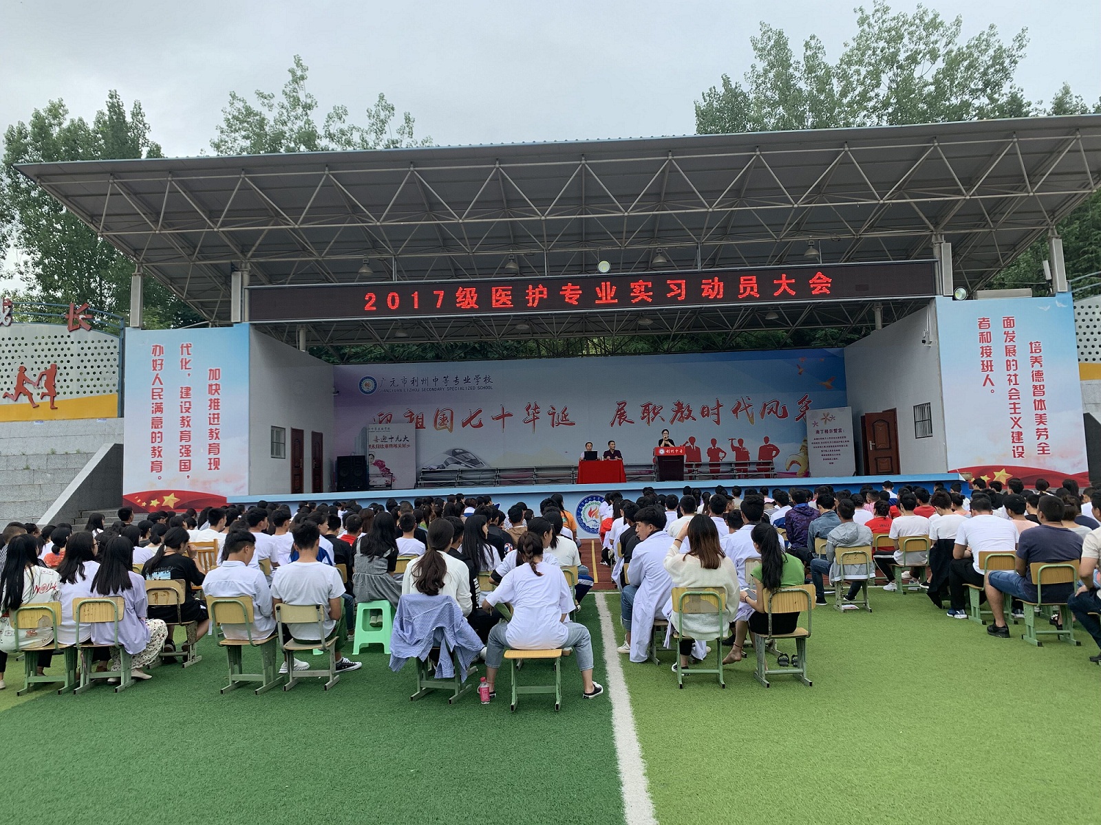 2019年6月20日下午,实习实训科在校操场召开2017级医护专业学生校外实习动员大会。大会由马灿副科长主持,实训科冯大军科长及实习学生管理蔡永林老师和全体17级医卫专业实习同学参加会议。