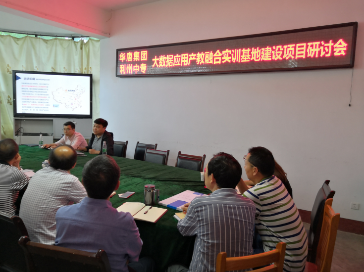 会议针对广元市利州中等专业学校大数据应用产教融合实训基地建设方案展开了论证与探讨。宋庆东副总经理向参会领导汇报了华唐集团大数据应用产教融合基地建设的项目背景、建设模式、运营方案、建设效益等情况,学校赵刚副校长对项目建设进行了可行性分析,剖析了学校参与基地建设过程中可能存在的问题与难点。双方经过多角度多层面的研讨,不断寻求合理的解决方案。