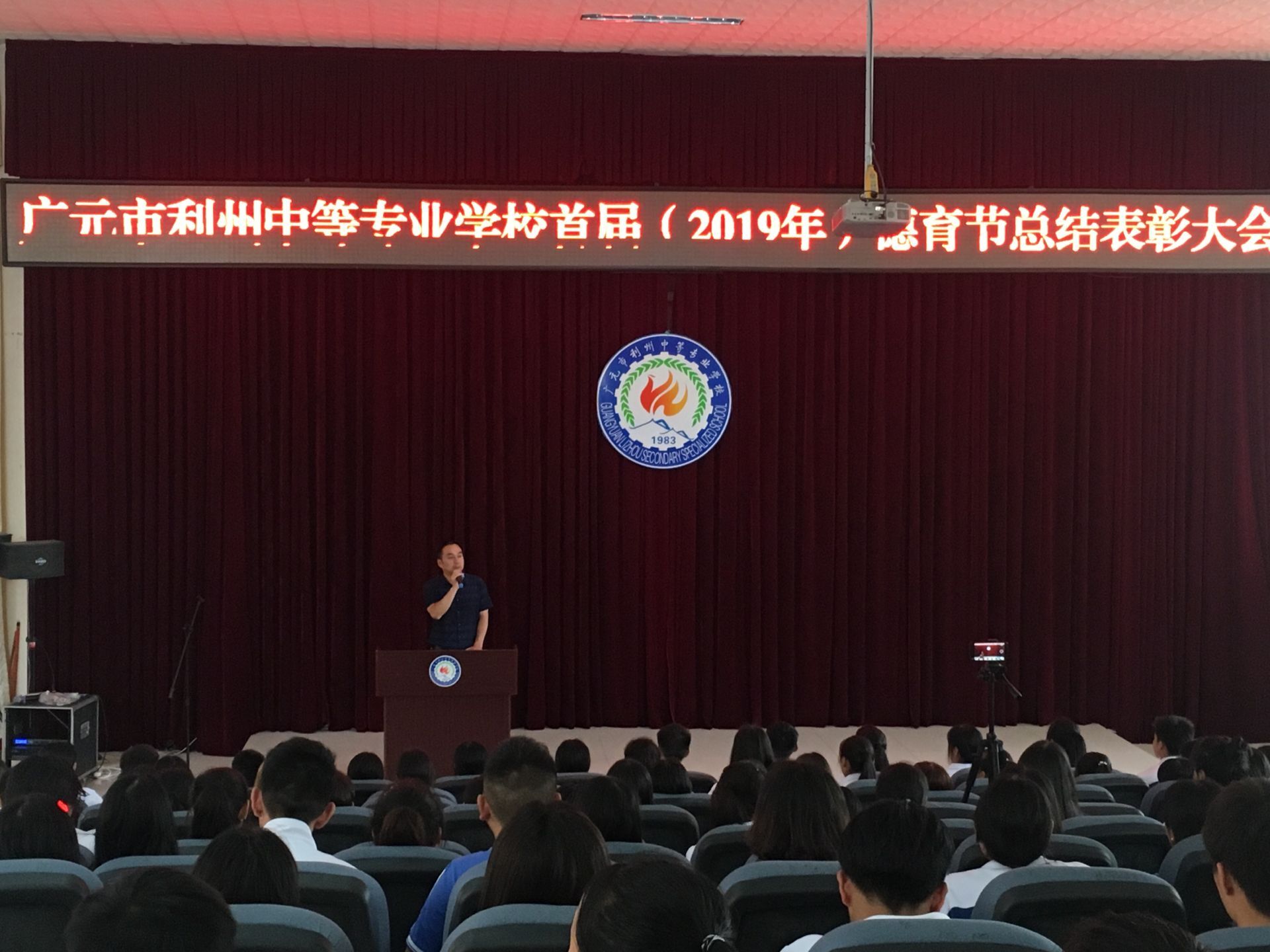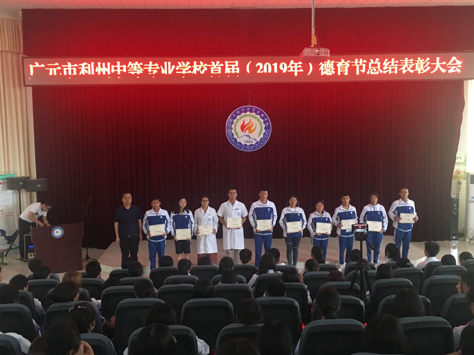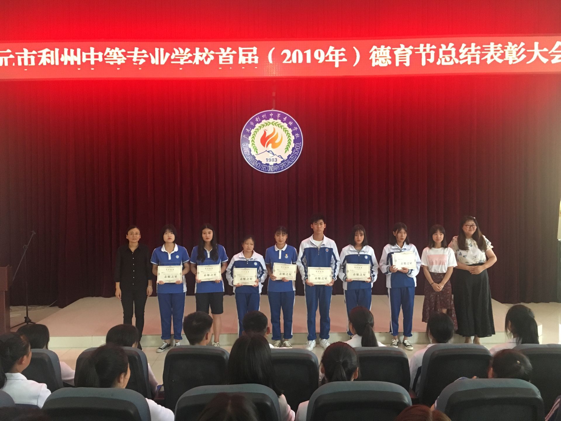 2019年6月26日上午,利州中专在学术报告厅举行首届德育节总结表彰大会,300名学生代表参加了会议,贾相成副校长、全体班主任老师出席会议并为获奖个人和集体颁发了荣誉证书和奖品,会议由学生科杨虹老师主持。