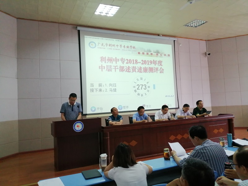 会议分两个阶段进行,在第一阶段,学校26名中层干部进行了限时5分钟的述职述廉工作,大家从一学年工作完成情况、党风廉政履职情况、存在不足及下一步工作思路等方面进行了述职述廉。参会人员以无记名投票、书面测评的方式,对全体中层干部进行了学年度民主测评。李锦校长对述职述廉情况进行了点评。