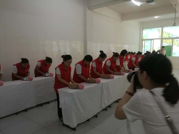 结业式后,谢晓东副市长带领大家观摩了培训成果和技能展示,我校保育员培训班的二十名学员展演了“婴儿抚触操”和“婴儿被动操”,舒缓的音乐,整齐的动作,专业的表演吸引了大家的目光,参展学员黄小欢作为四个培训班唯一的代表接受了媒体采访。