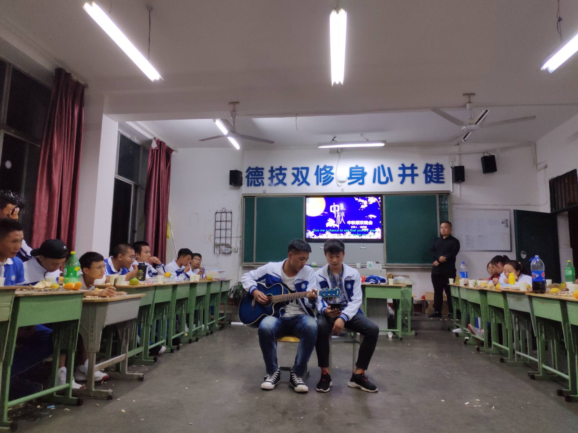 各班充分班团活动,以多种形式庆祝传统佳节。在活动中,同学们搜集与中秋节相关的资料,并在班内交流,了解中秋节的含义以及各地过中秋的习俗。来自凉山的同学们用自己的歌声传递对家乡的思念。各班精心准备,精彩纷呈的活动让同学们度过了一个欢乐而有意义的中秋佳节。