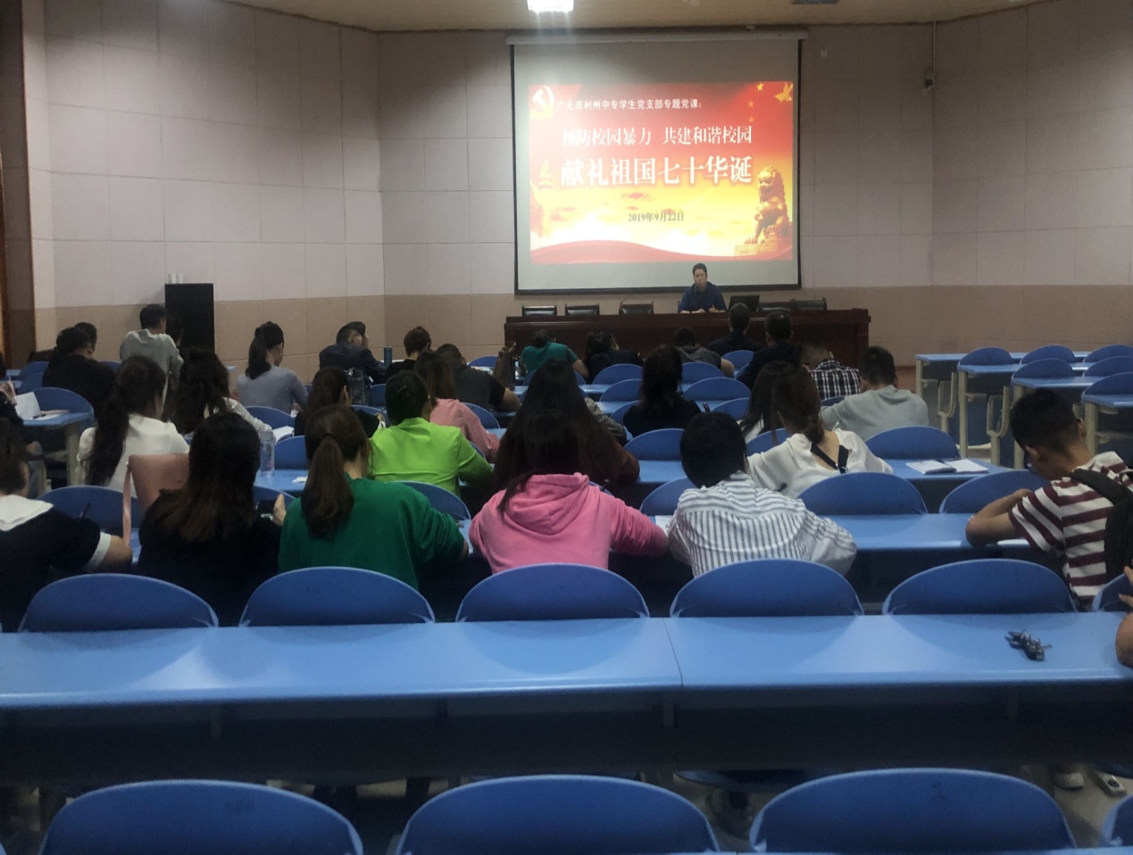 ? 2019年9月22日晚19点20分,继学校李锦校长组织召开全校安全稳定警示会、主管安全贾相成副校长举办校园安全工作培训会之后,学生支部再次组织召开“预防校园暴力、共建和谐校园,献礼祖国70华诞”的专题培训会,学生支部部分党员、安保科相关同志、全体班主任老师参加了培训。