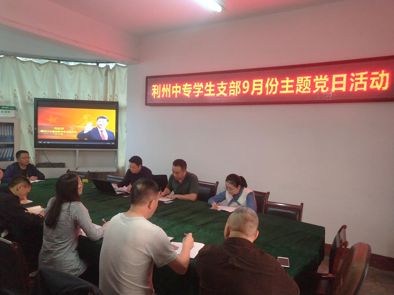 2019年9月28日上午,利州中专学生党支部在东3-4会议室举行9月份主题党日活动,支部全体同志参加了会议,学校党委委员、贾相成副校长以普通党员身份参加了会议,会议由支部书记王兴兵同志主持。