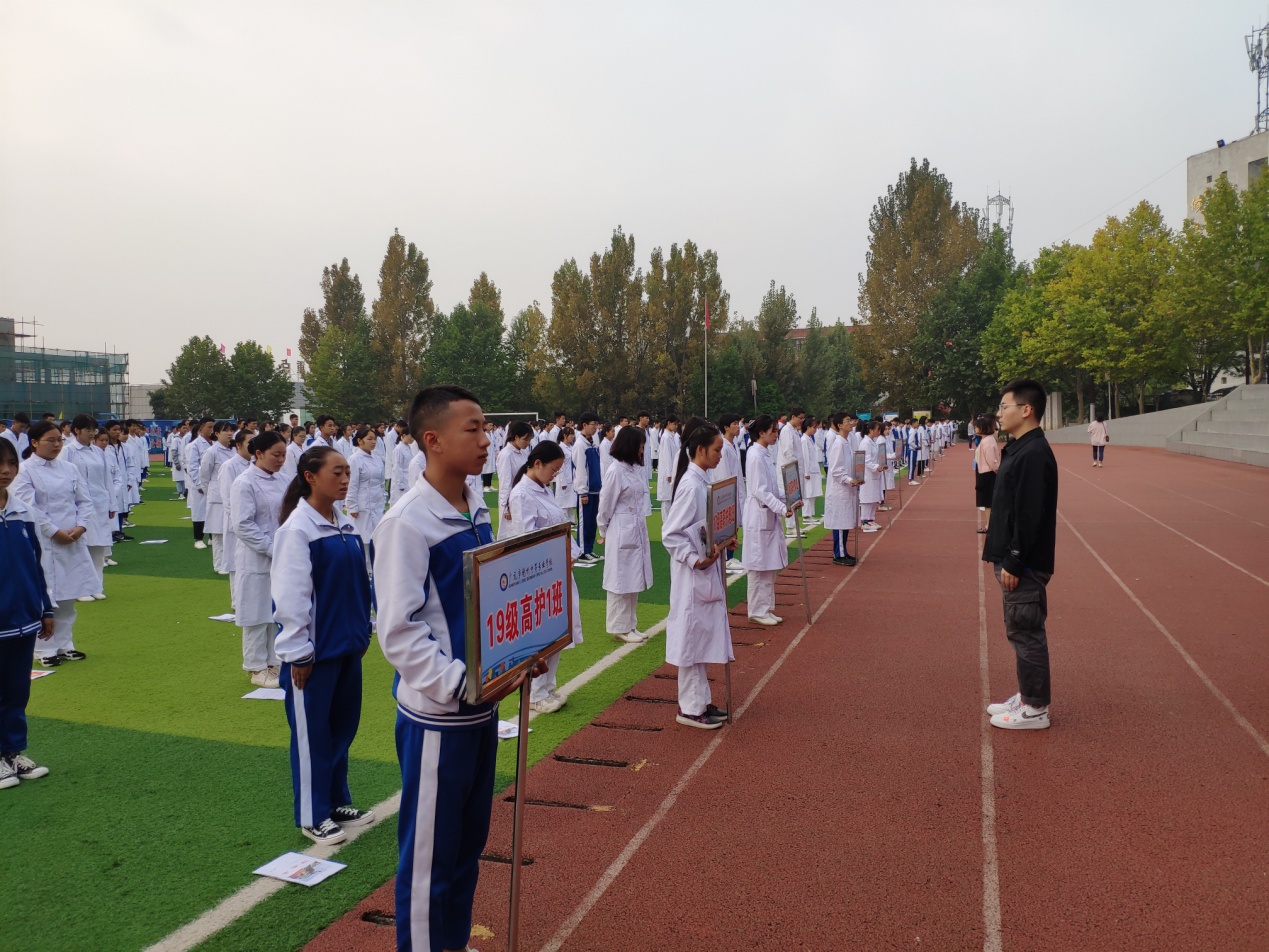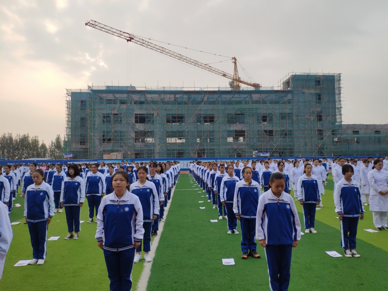 在18高护1班陈悦同学的领诵下,全体同学齐声朗读论语《学而篇》。“学而时习之,不亦说乎?”、“慎终追远,民德归厚矣”……中华博大儒家文化精髓化着天籁之音,在田径场久久回荡,伴随着初升的朝阳一起,构筑出一幅绝美的校园画卷。