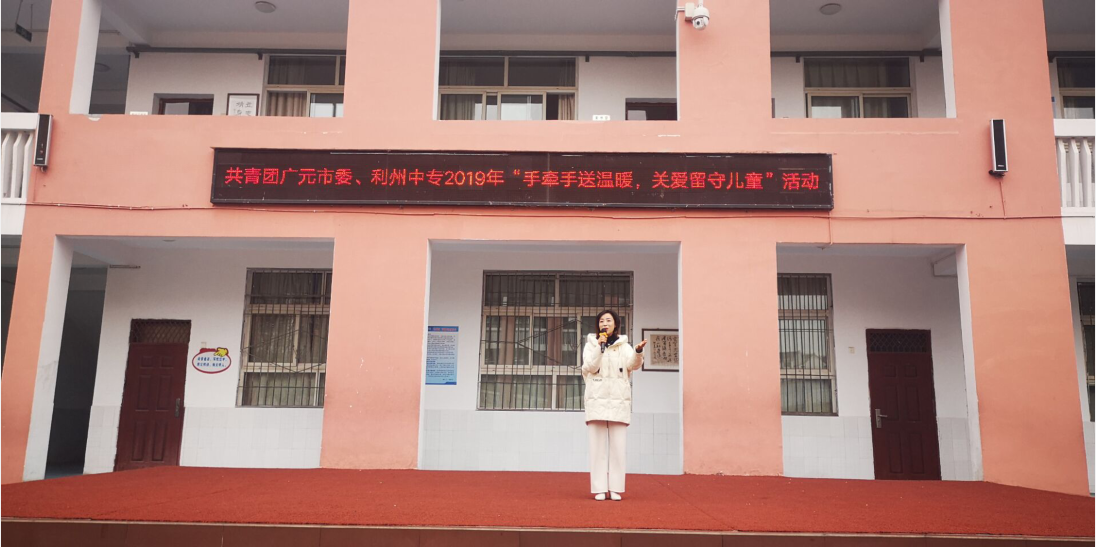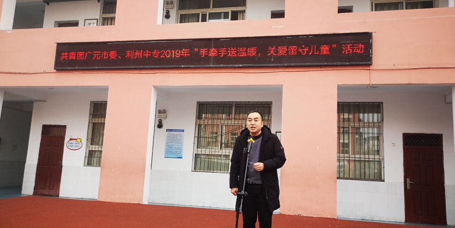 习总书记号召:“让留守儿童感受到社会主义大家庭的温暖”,12月11日,广元市团市委“暖冬行动”持续进行,将一份爱心带给留守儿童,让他们也能在冬日里沐浴阳光,茁壮成长,利州中专新风尚志愿社团与回龙河小学留守儿童志愿活动在回龙河小学运动场举行,广元市团市委副书记何明珍、回龙河小学校长张季平、利州中专副校长贾相成出席本次活动。