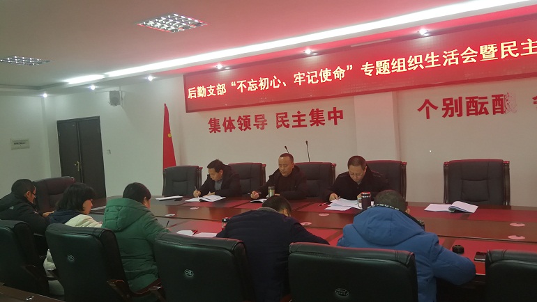 今日下午,后勤党支部在四楼会议室召开了“不忘初心,牢记使命”专题组织生活会暨2019年民主评议党员大会,学校党委苏克难委员到会指导。大会由支部书记马健同志主持,全体党员同志参加。