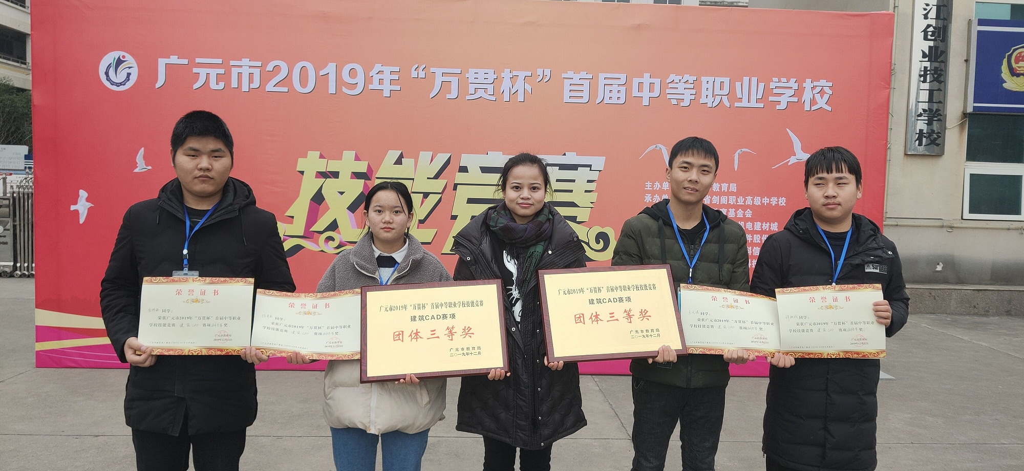 12月21日至22日,由广元市教育局主办的广元市2019年“万贯杯”首届中等职业学校技能竞赛在四川省剑阁职业高级中学校举行。经过激烈角逐,我校选手在本次技能竞赛中共获得五个奖项。其中建筑CAD团体2个三等奖,工程测量团体1个三等奖,汽车机电维修个人2个三等奖。