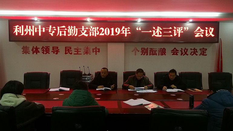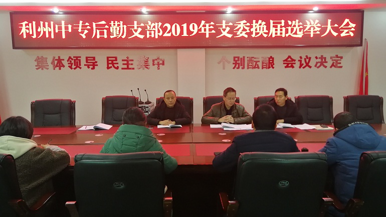 2020年1月3日,后勤支部在四楼会议室召开支部党员大会,进行2019年度支部书记“一述三评”和换届选举支部委员。会议由支部书记马健同志主持,苏校长代表校党委参加了会议。