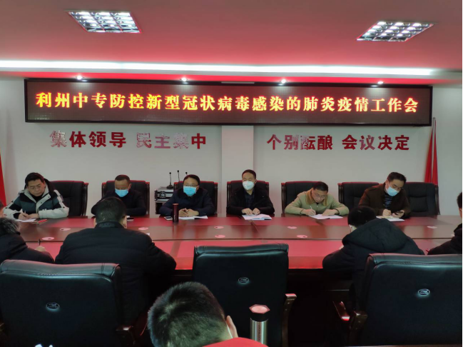 2020年1月28日下午,利州中专防控新型冠状病毒感染的肺炎疫情工作会在修正楼四楼会议室举行,学校中层以上干部参加会议,李锦校长主持会议。