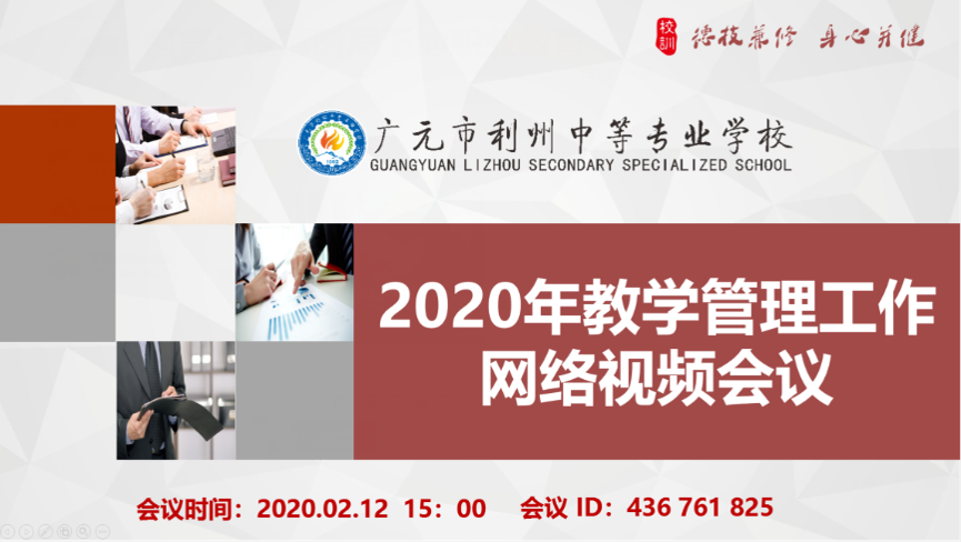 2020年2月12日下午,利州中专2020年春季第一次教学管理例会视频会议顺利召开,学校教学管理干部参加会议,赵刚副校长主持会议。