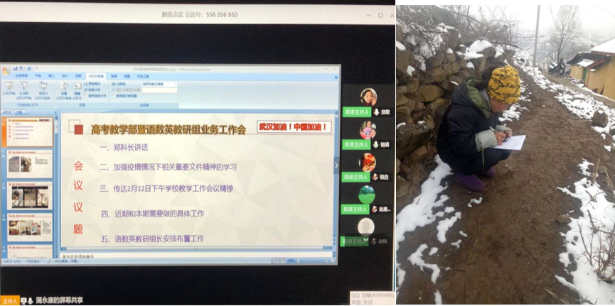 此外,蒲永康主任还多次强调,疫情时局下的17级升学班在线教育,她们因为家里没有网络,被迫走到严寒的山坡上,只为觅得一次能够平等学习的机会。作为教育人,我们纵然不能做“顶风冒雨”的“逆行白衣”,也要努力成为为学生“遮风挡雨”的“身心导师”。所谓青山一道,风雨同担,疫情在前,重任在肩,我们一直在行动。
