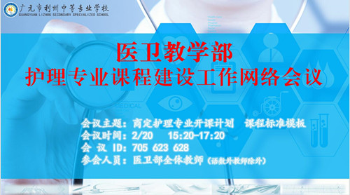 2月20日下午,医卫部召开了关于课程标准建设以及学期开课计划的相关线上会议。会议由部门张仲舒副主任主持,学校赵刚副校长、教务科郑敏科长、赵星圻副科长及全体护理专业课教师参加了会议。